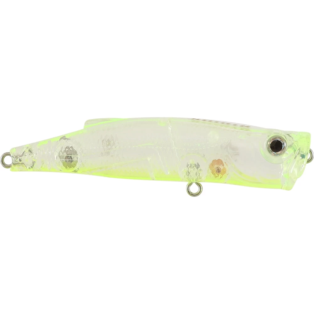 The lure has a slender profile and casts exceptionally well for the size. It is an excellent walker with a swift side to side action. The key to the unique action of the Pop 75 is the slim profile.