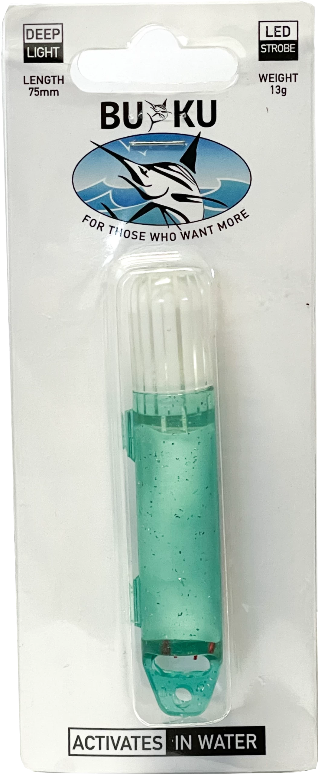 High quality water activated deep drop fishing light made from heavy duty plastic with a quality finish. This led light emits a powerful, ultra bright blue strobe flash that activates only when submerged under water saving the life of the lithium battery.