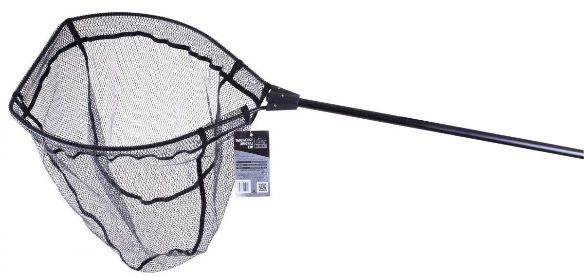 This model has a large frame and a retractable 120cm handle with EVA grip, making it ideal for boat fishing – it has the length to the reach the fish and compactness to store easily on the boat when not in use.