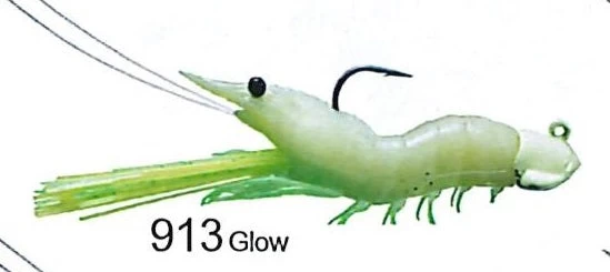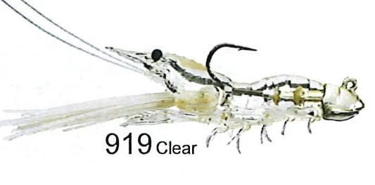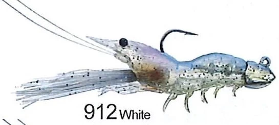 The silicone skirt animates the lures appearance by mimicking the motions of a living shrimp’s front legs, both in motion and at rest.