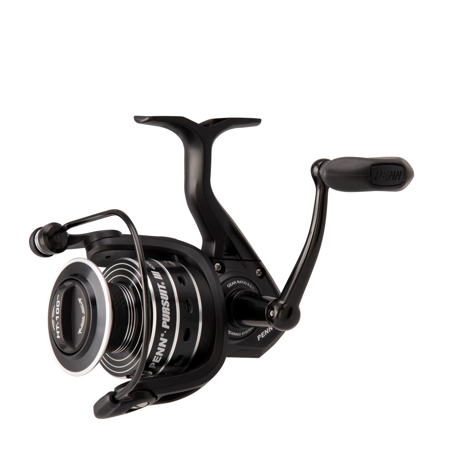 The PENN Pursuit III features a durable construction and the smooth gear system anglers expect from PENN. This reel features an ultra lightweight, corrosion-resistant graphite body and powerful HT-100 drag system making the Pursuit III a great value for the money for saltwater anglers. Available in six sizes from 2500 to 8000, the Pursuit III has a reel for most fisheries. The Instant Anti-Reverse eliminates even the slightest rotor back play for instant hook-ups every time, while the 4 shielded stainless steel ball bearings provide smooth retrieves.
