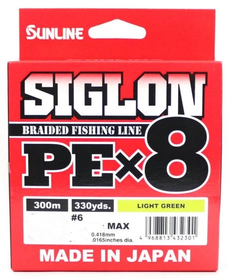 Sunline’s newest braid, Siglon PE, offers incredible performance at an amazing price! Made from EX-PE fibres, Siglon PE offers a tightly woven braid that provides superior abrasion resistance, a very thin diameter for its breaking strain and minimal stretch. Because of how thin this line is we recommend choosing one or two line classed heavier or refer to the PE size to give yourself extra protection from shock and abrasion. It is very easy to manage with a stiff yet ultra-smooth and round profile and is available in striking colour options. Available in 8 carrier PE (PEx8)