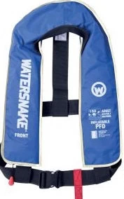 The Watersnake Inflatable PFD Level 150 Foul Weather Offshore Yoke is designed for all-day comfort, with a soft neoprene neck-liner to avoid irritation or chaffing on the back of your neck. It is designed to wear over your clothes and has a large 50mm webbing belt with a twin-tab synthetic nylon buckle for quick and easy fitting.